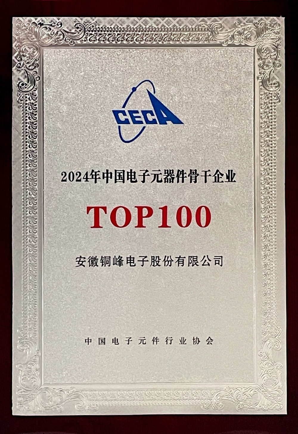 會議過程中,除舉辦主題演講、高端對話、分會平行論壇外,還舉行了2024年中國電子元器件行業(yè)骨干企業(yè)授牌儀式,公司再次獲評“中國電子元器件骨干行業(yè)TOP100 ”榮譽,這是公司連續(xù)三十余屆入選行業(yè)百強。
