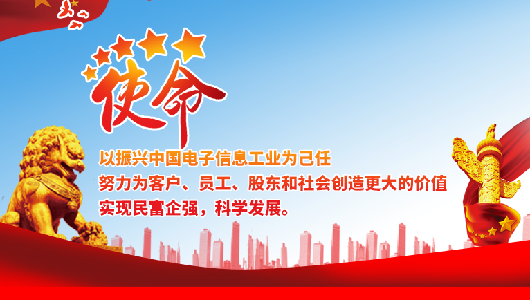 以振興中國電子信息工業(yè)為己任,努力為客戶、員工、股東和社會創(chuàng)造更大的價值,實現(xiàn)民富企強,科學(xué)發(fā)展。