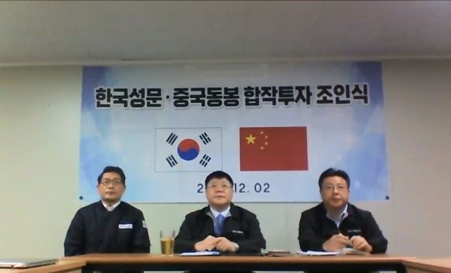 12月2日上午,公司與韓國(guó)成門(mén)公司以視頻會(huì)議形式舉行合資合作簽約儀式,雙方投資設(shè)立合資公司,實(shí)施新能源汽車(chē)濾波用薄膜電容器項(xiàng)目。公司董事長(zhǎng)黨委書(shū)記、董事長(zhǎng)黃明強(qiáng)與韓國(guó)成門(mén)公司代表理事辛浚燮分別代表雙方簽署合資合作協(xié)議。公司總經(jīng)理鮑俊華、副總經(jīng)理、財(cái)務(wù)總監(jiān)郭傳紅、董事會(huì)秘書(shū)李駿,韓國(guó)成門(mén)公司理事辛承燮、金鐘洛等分別在各自會(huì)場(chǎng)參加簽約儀式。